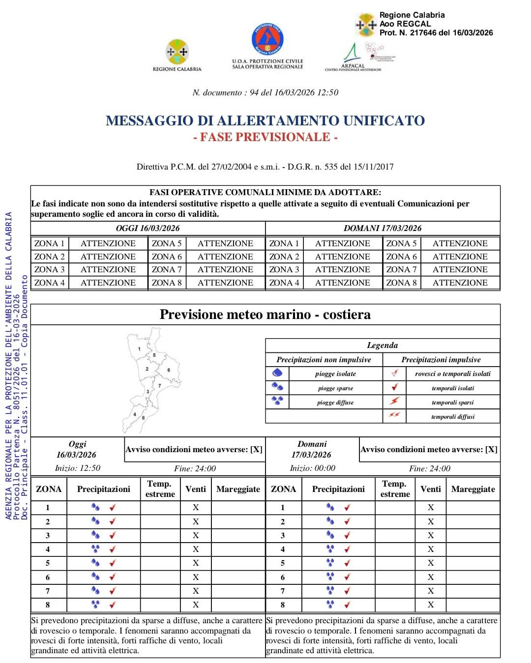 Ordinanza preventiva di chiusura di tutti i plessi scolastici di ogni ordine e grado presenti su tutto il territorio comunale per il giorno 17 marzo 2026 (Allerta Meteo ARANCIONE).